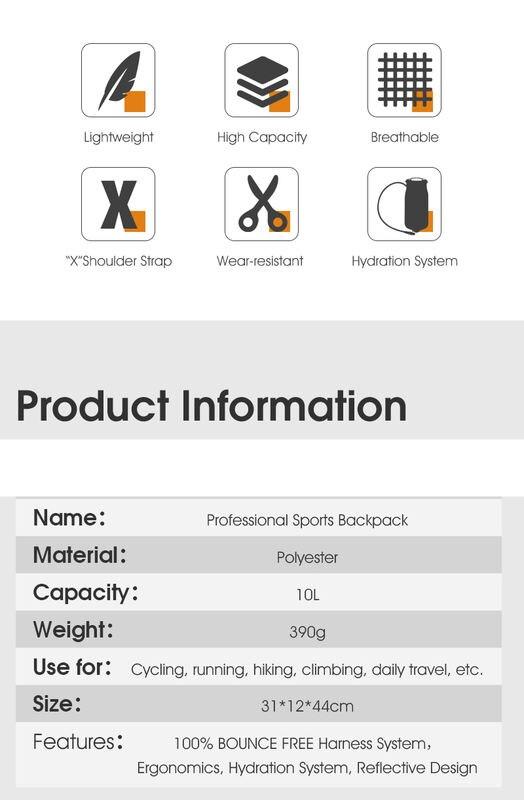 Features:100% BOUNCE FREE Harness System, Ergonomics, Hydration System, Reflective Design
